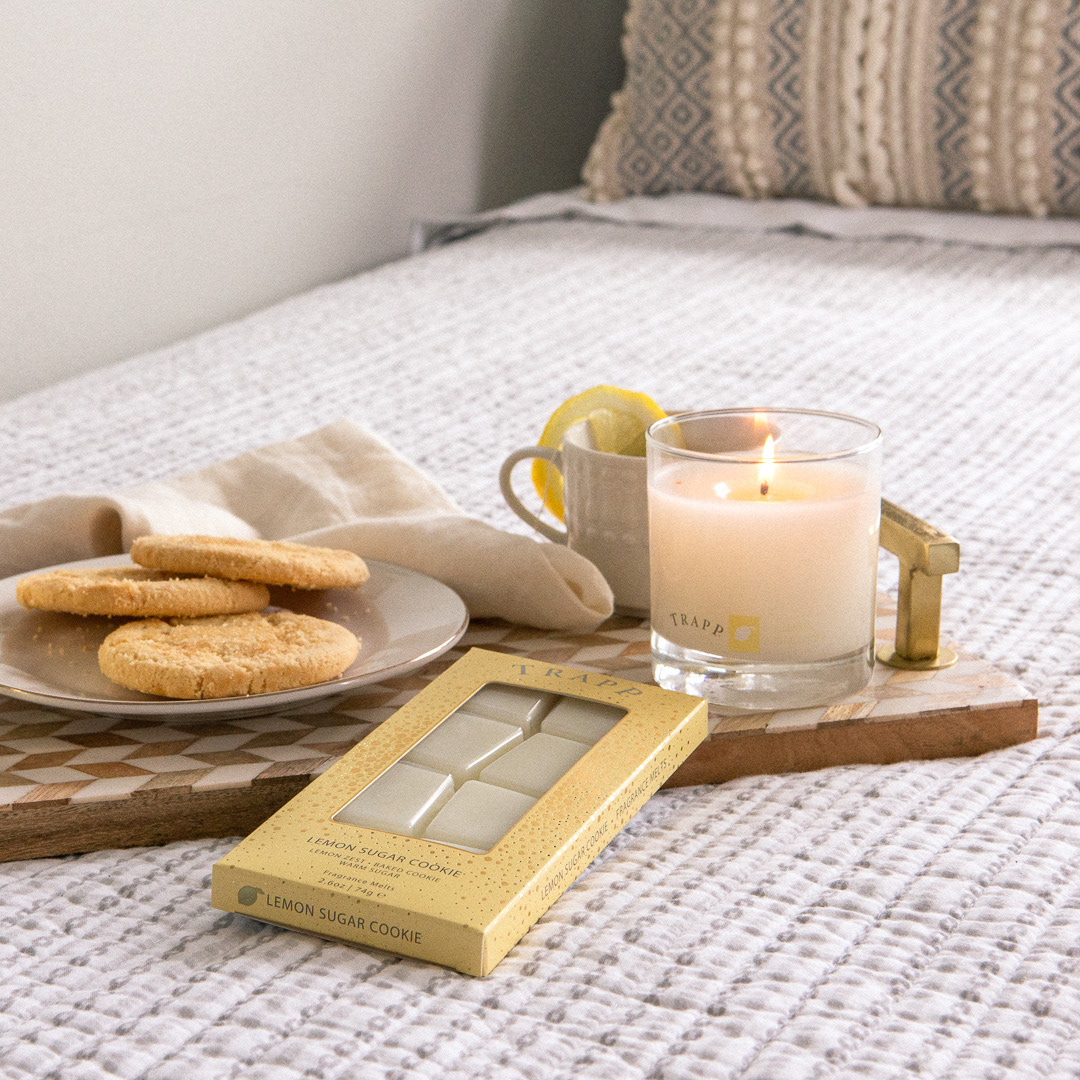 Trapp aimed to highlight their diverse product range in some shots, showcasing their stunning mercury glass three-wick candles, wax melts, and a distinctive melt warmer equipped with a unique silicone dish.