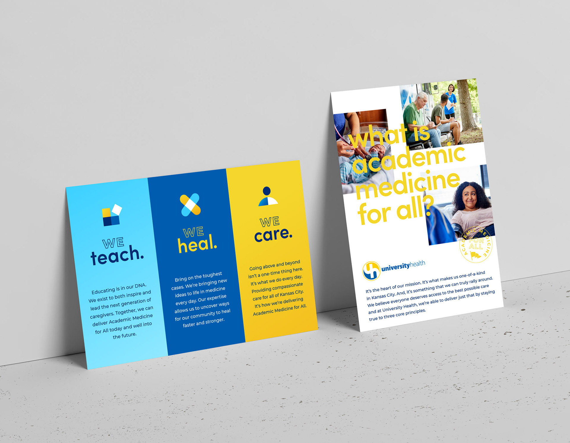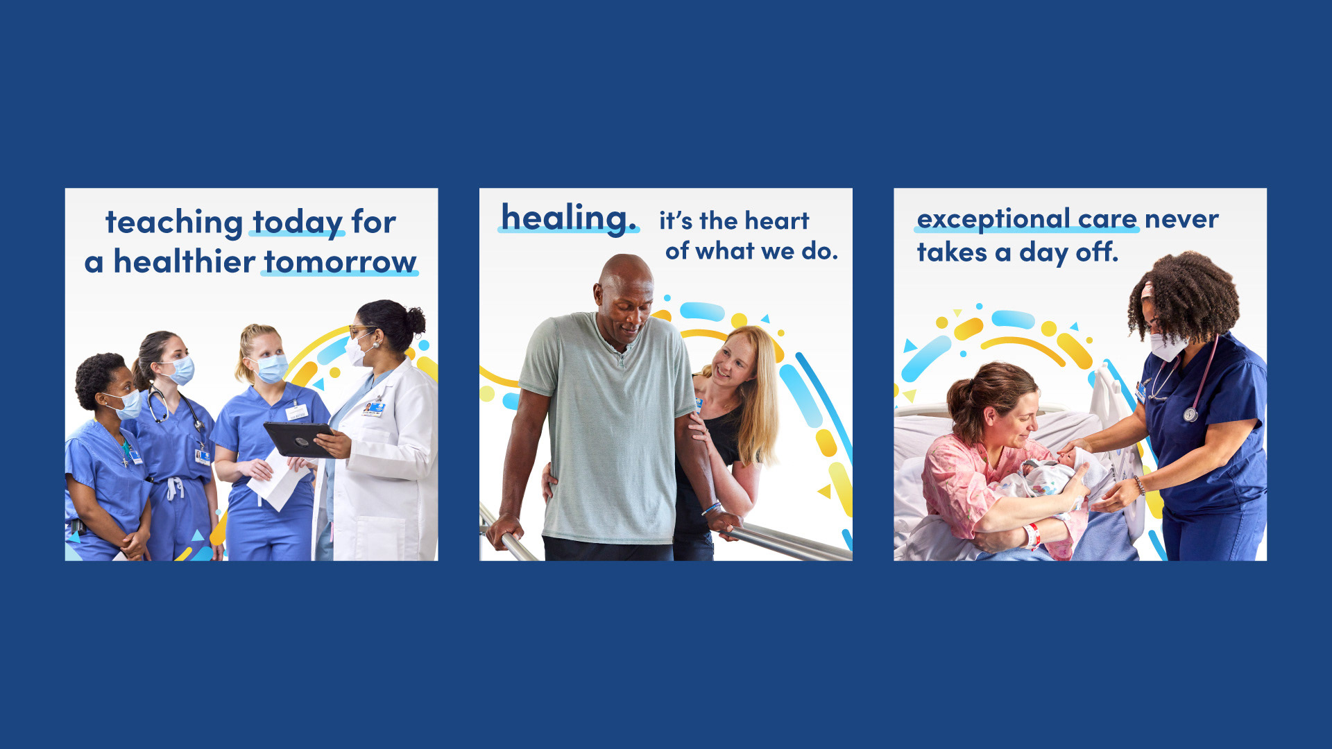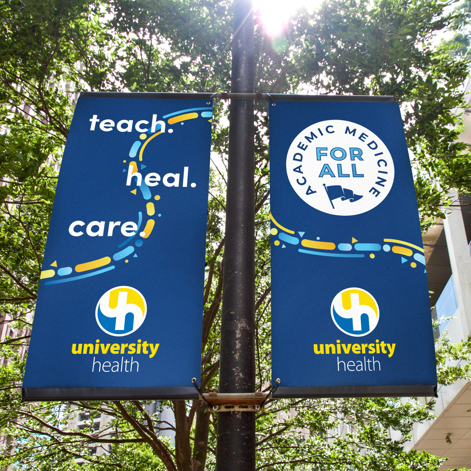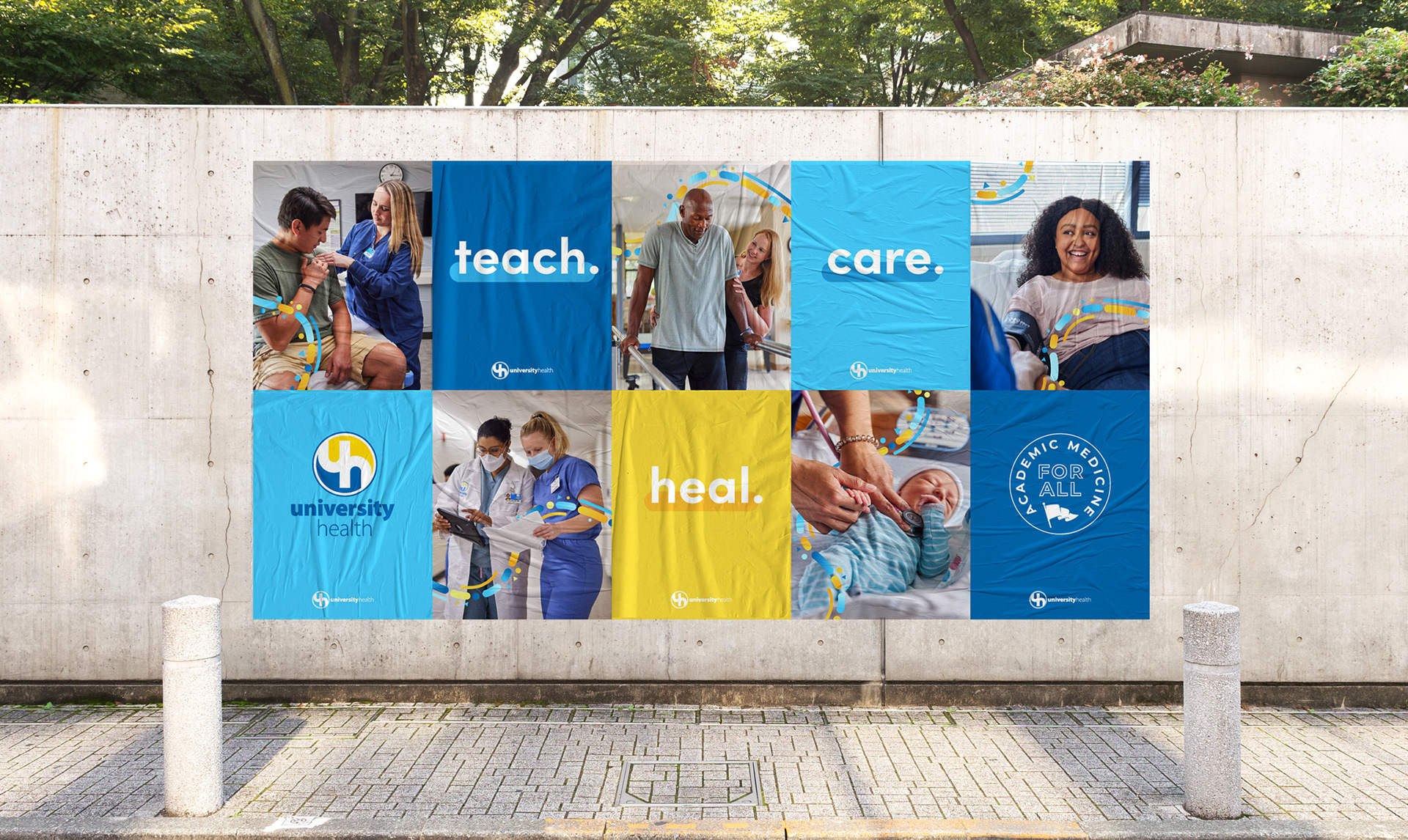 At University Health, we deliver Academic Medicine for All. Before unveiling this message to the public, we meticulously designed all the elements required for an internal launch, reiterating to employees the hospital's three fundamental pillars: they teach, heal and care.